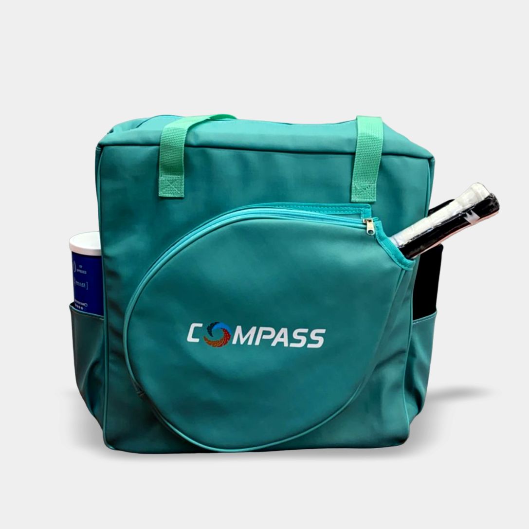 A Bolsa Raqueteira da Compass possui na parte frontal um espaço para guardar a sua raquete. O seu compartimento principal é amplo, com um ótimo espaço para organizar roupas, calçados e acessórios para a prática esportiva.