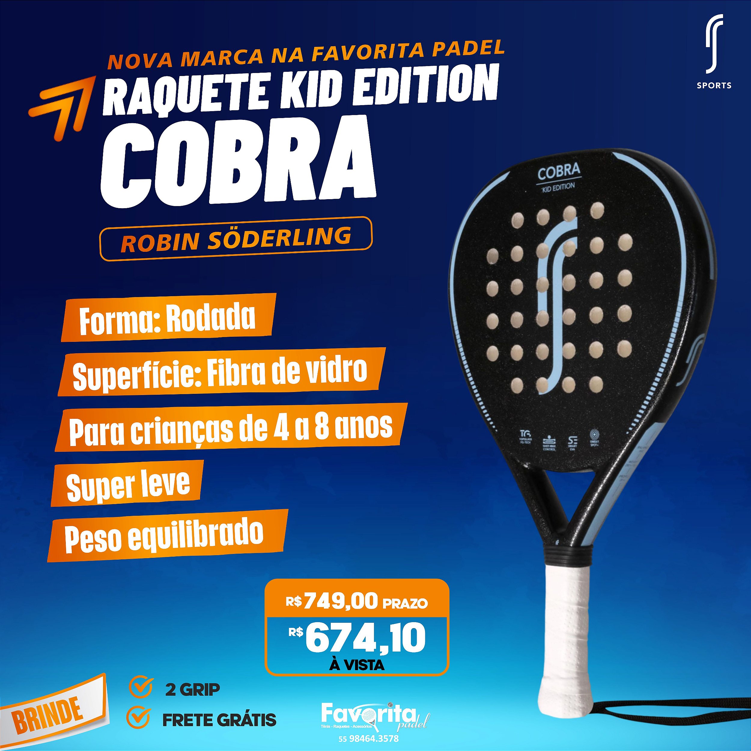 Conheça as Características da Raquete de Padel Cobra Kid Edition Blue - Robin Söderling