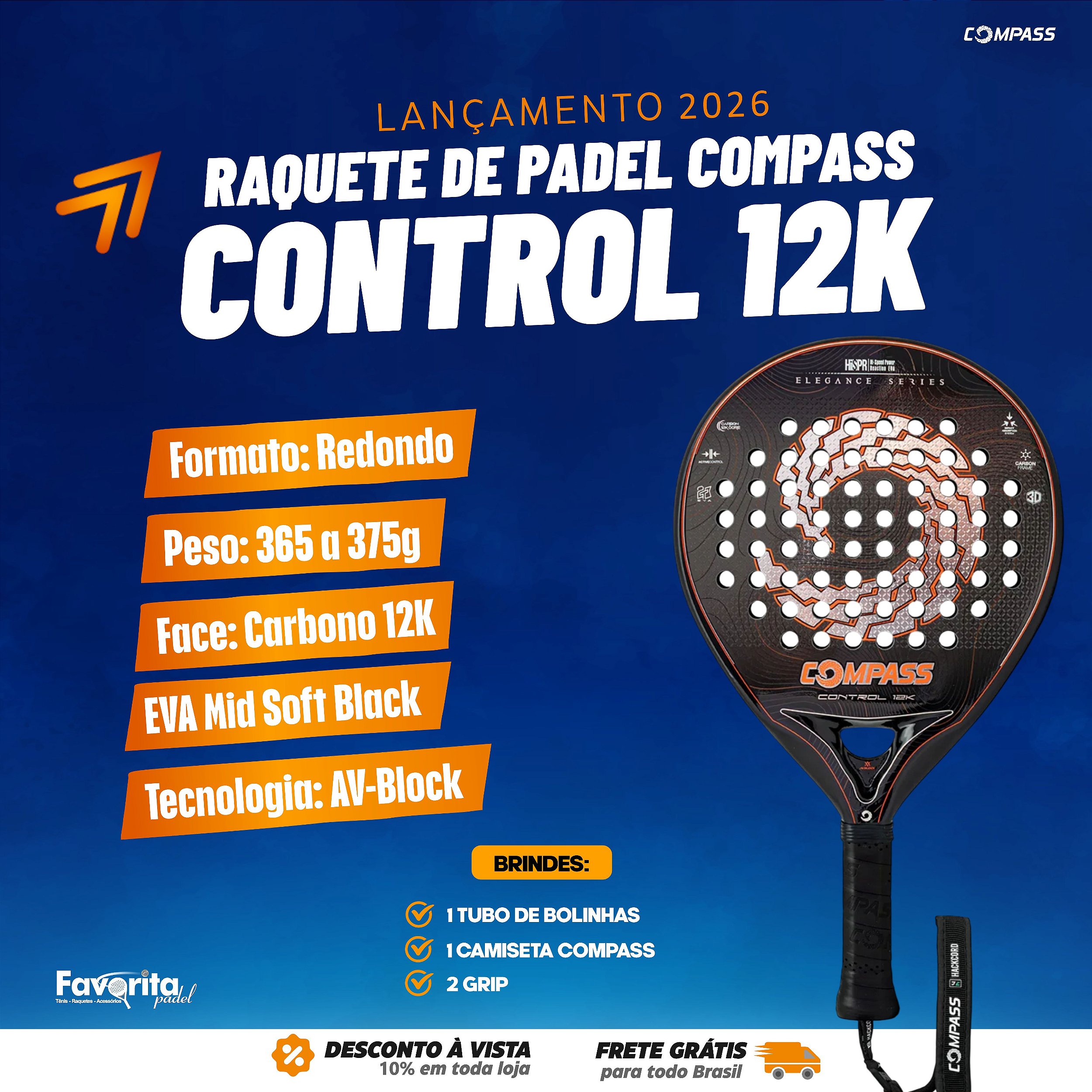 Seu formato Redondo favorece um controle excepcional da bola, ampliando a estabilidade nos golpes e proporcionando maior segurança nas trocas defensivas. A estrutura em Carbono 12K combinada ao Núcleo EVA Mid Soft Black gera uma sensação equilibrada de toque macio e resposta firme.