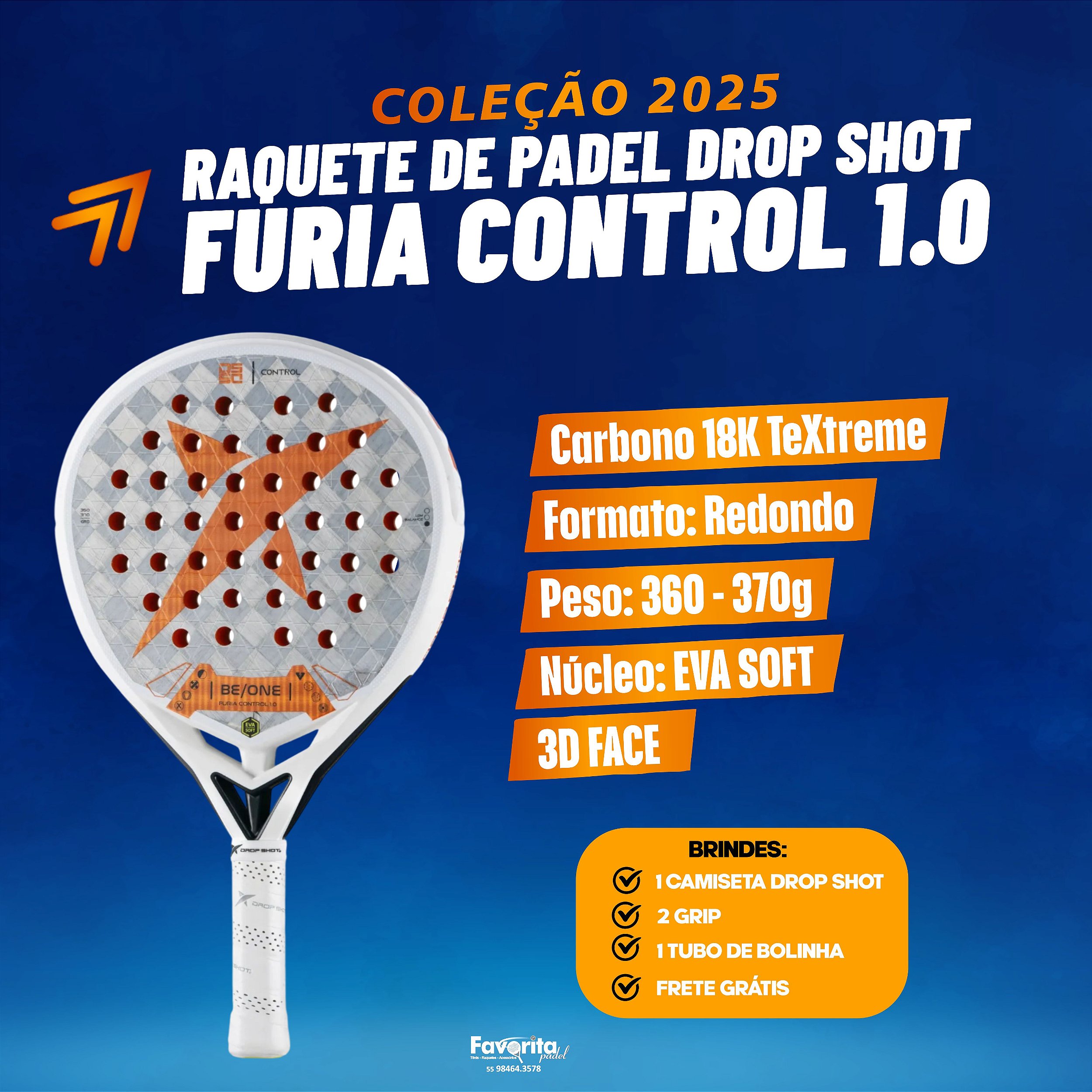 Na DROP SHOT, sabemos que atletas de alto rendimento precisam de um equipamento à altura do seu talento. Por isso, desenvolvemos a Furia Control 1.0 para oferecer o melhor em controle, conforto e estabilidade, permitindo uma experiência de jogo excepcional.