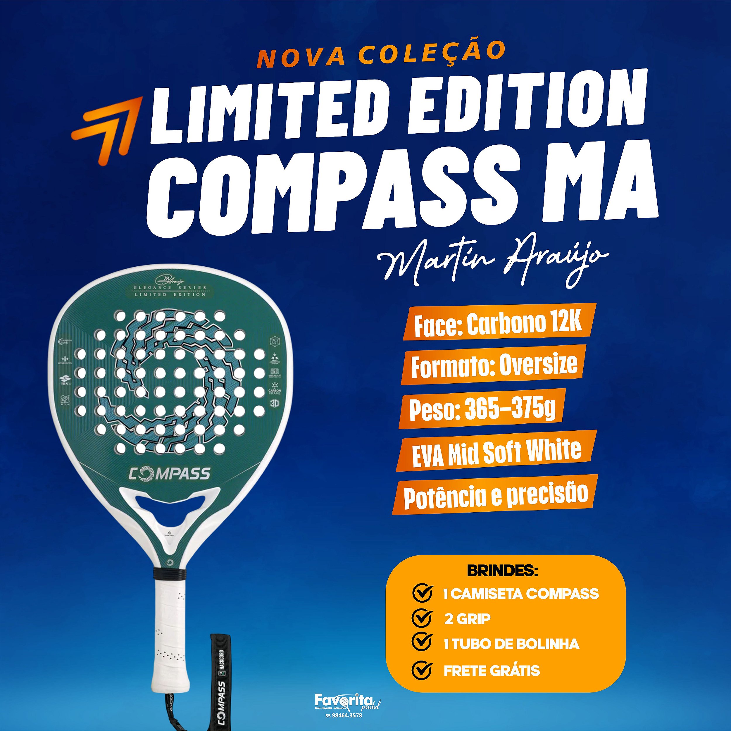 Martín Araújo assina esta edição especial da coleção Compass Limited Edition, com poucas unidades produzidas e identidade única. Criada para quem busca sua melhor versão dentro de quadra, essa raquete traduz o jogo inteligente e técnico do atleta uruguaio.