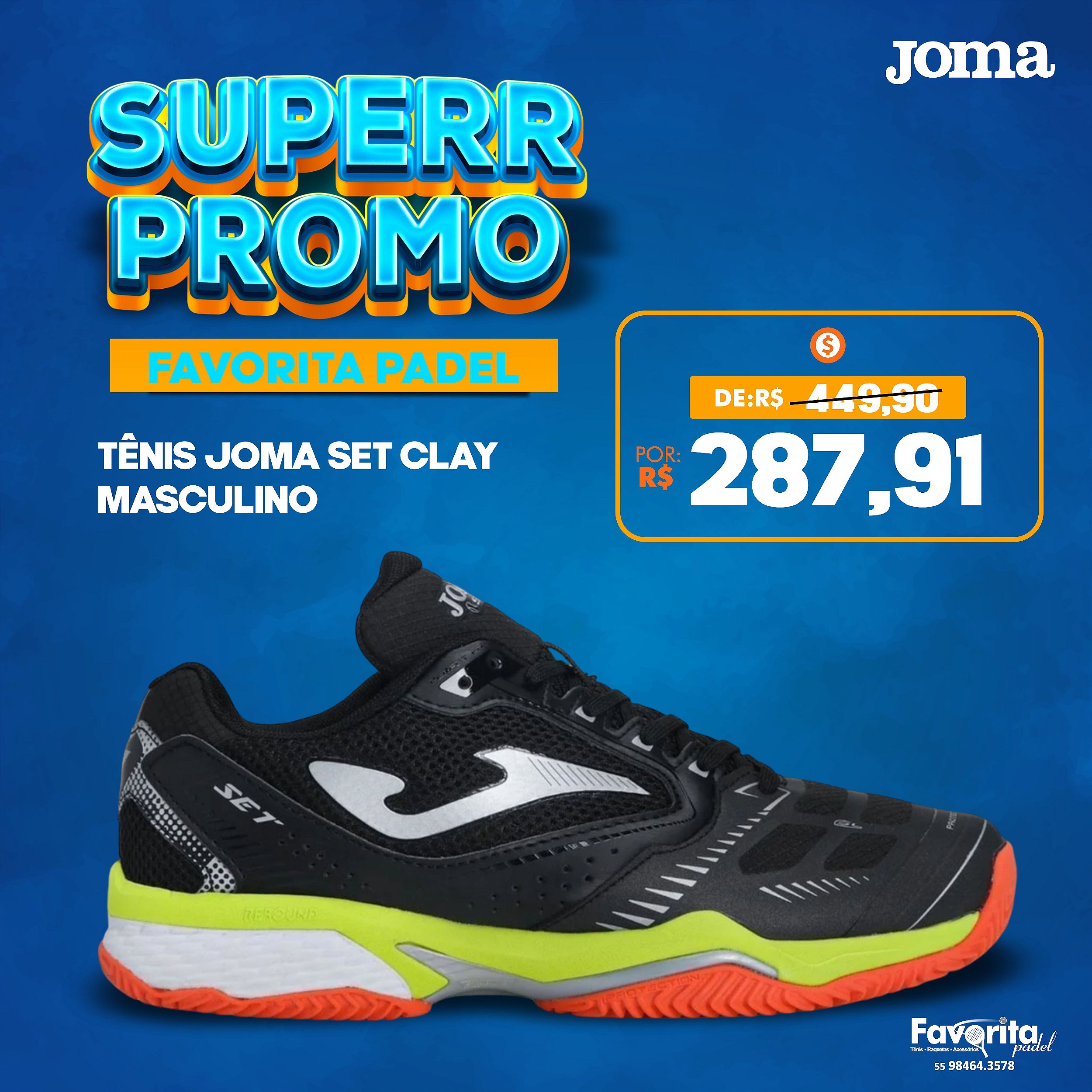 O Tênis Joma Set Clay Preto é indicado para quadras de saibro e foi desenvolvido com tecnologias para proporcionar aos jogadores conforto em cada movimento, respirabilidade e resistência.