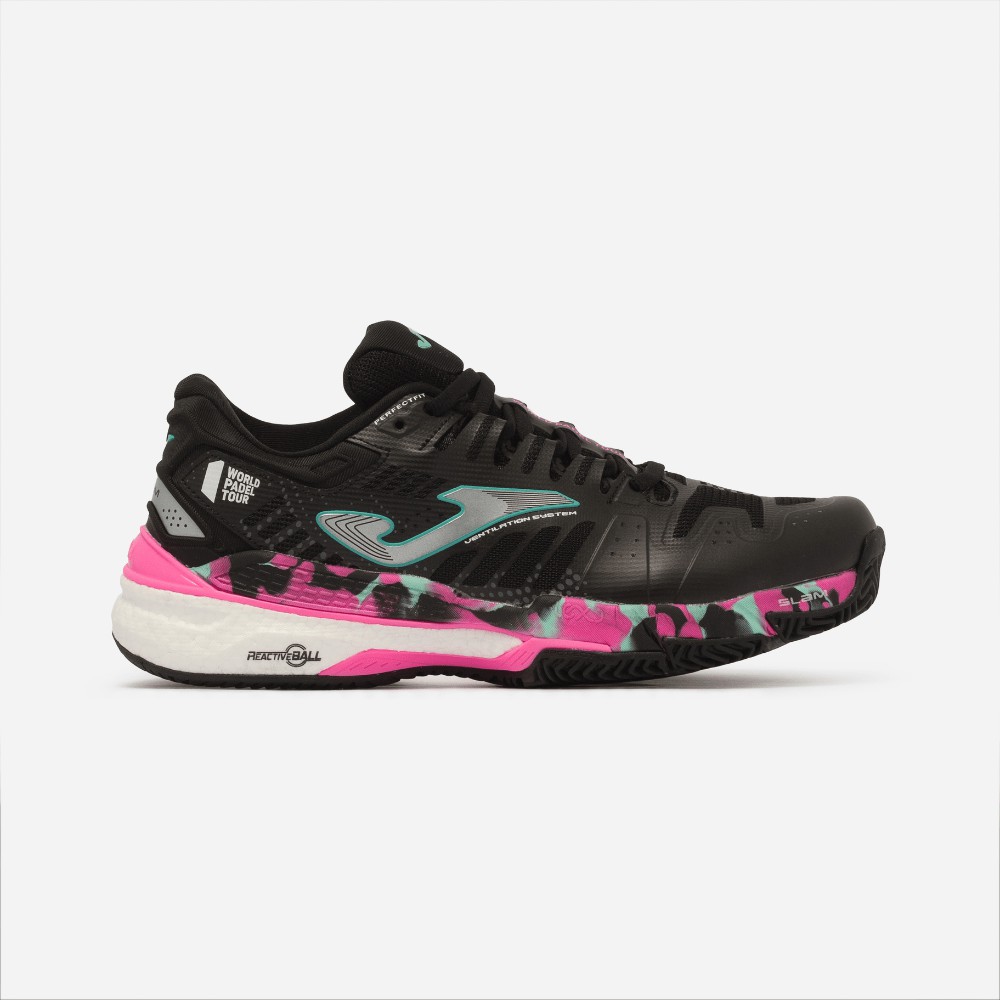 O Tênis Joma Slam Lady é um calçado desenvolvido especialmente para Padel, possui cabedal em nylon e peças em TPU que eliminam a necessidade de costuras e proporcionam leveza sem perder a respirabilidade. Palmilha em EVA de 2mm aliada a base do calçado para melhor acomodação dos pés, entressola com duas densidades com phylon e tecnologia Reactiveball e excelente amortecimento e impulsão, além do sistema Stabilis que dá maior segurança na execução dos movimentos. Solado em borracha de alta resistência a abrasividade e pontos mais elevados na biqueira e parte medial que oferecem mais proteção ao pé.