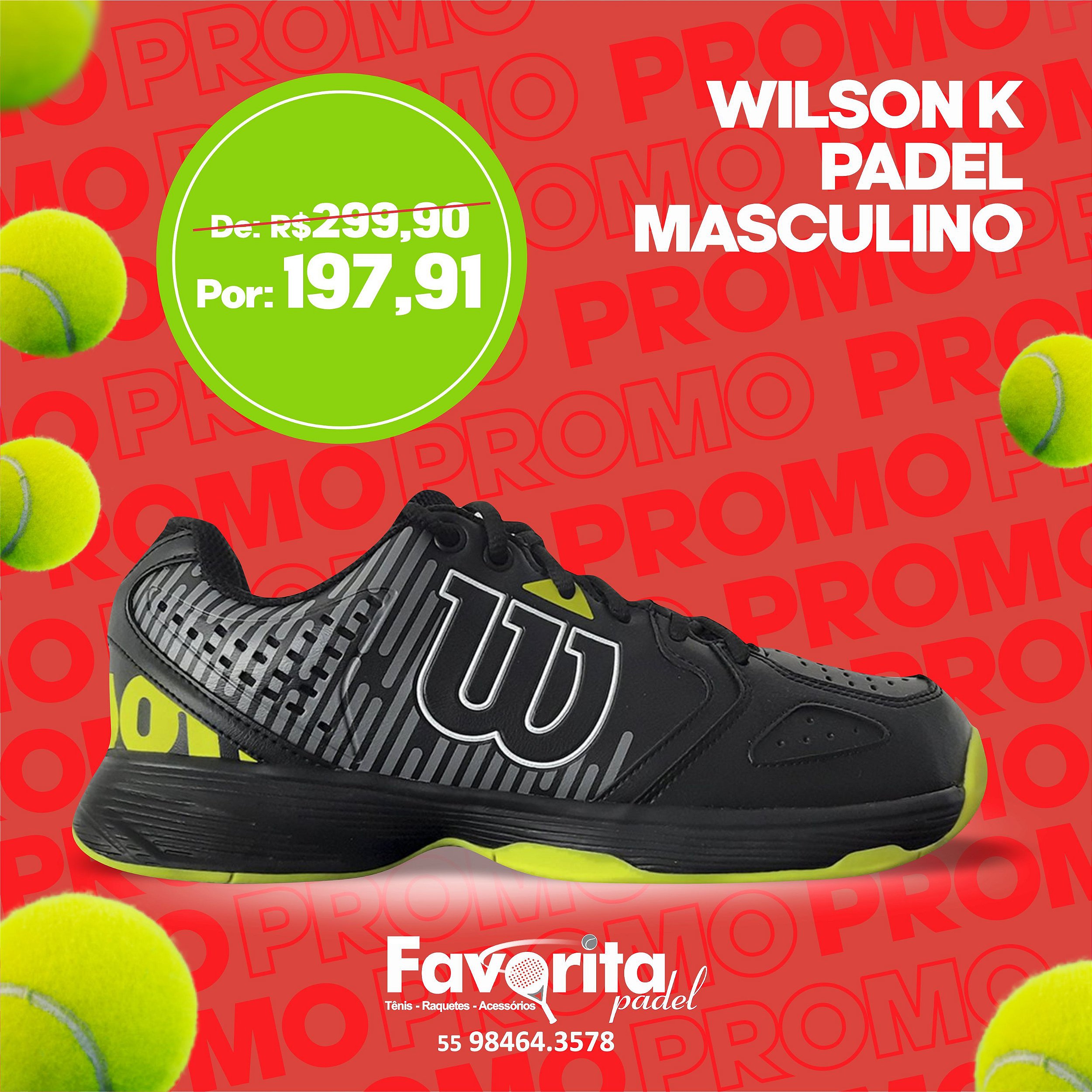 Tênis K Padel Preto e Neon – Wilson Masculino